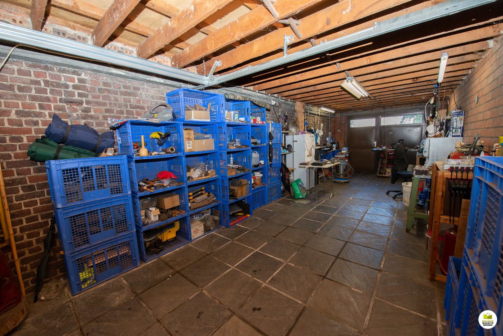 Via de keuken is er toegang naar het terras en de tuin en twee buitenbergingen. De tuin is ruim en volledig omheind. Via de tuin is er ook toegang naar de garage (sectionale poort)