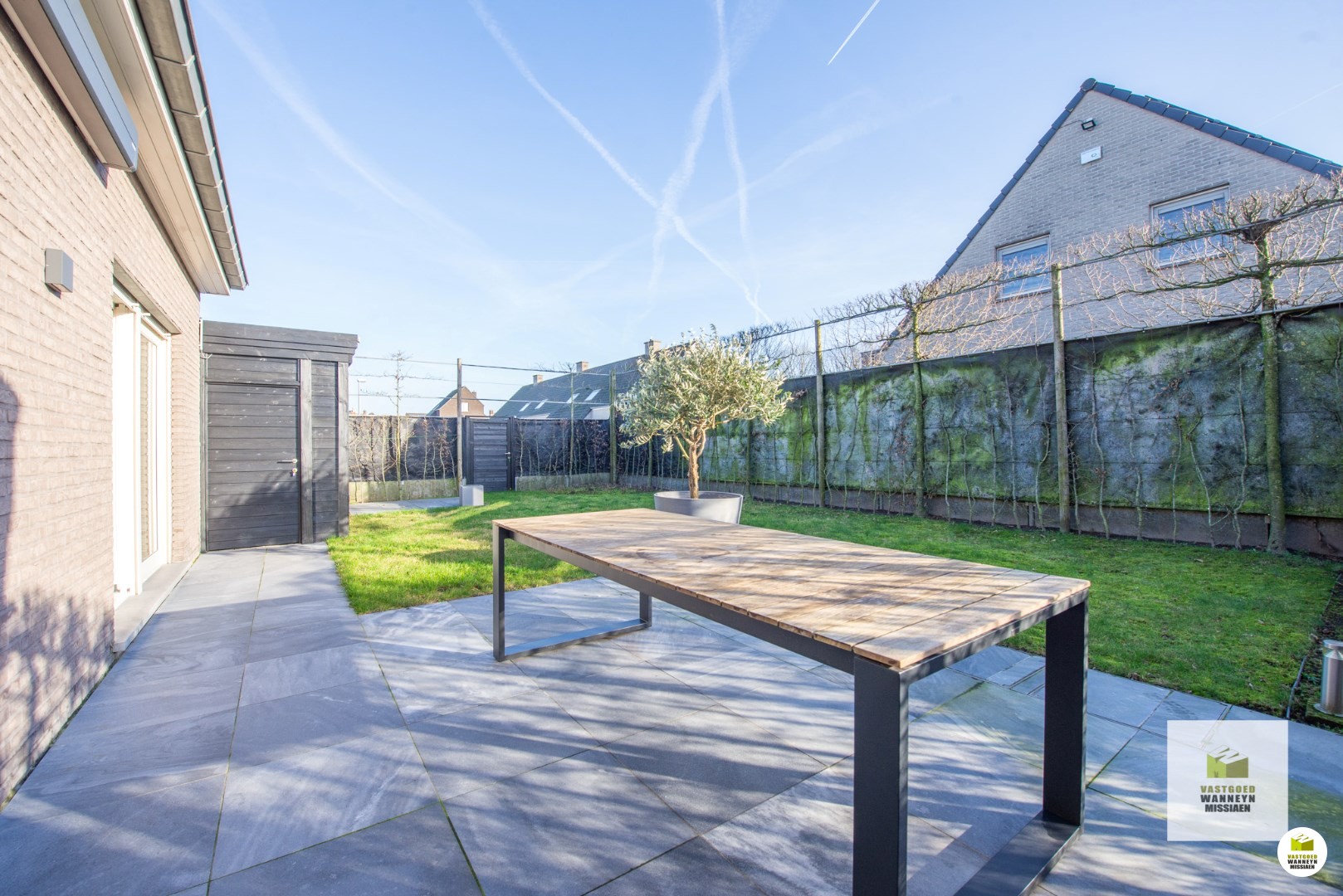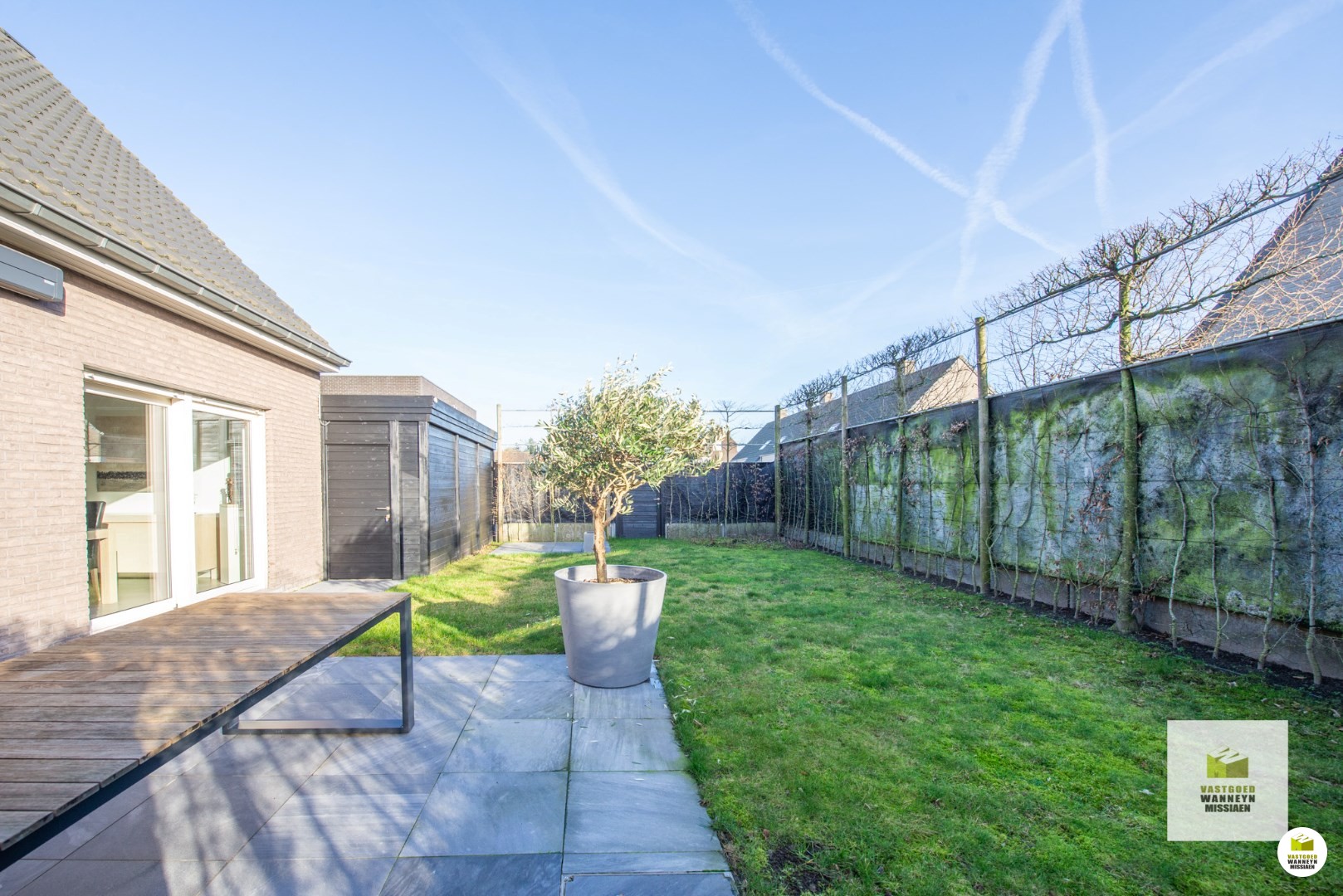 Palend aan de garage is er ook een tuinberging en een regenwaterput van 10.000 liter.