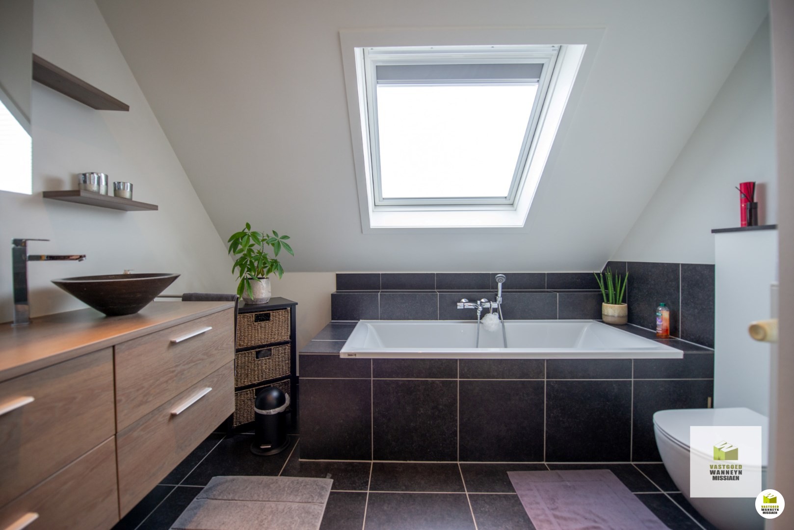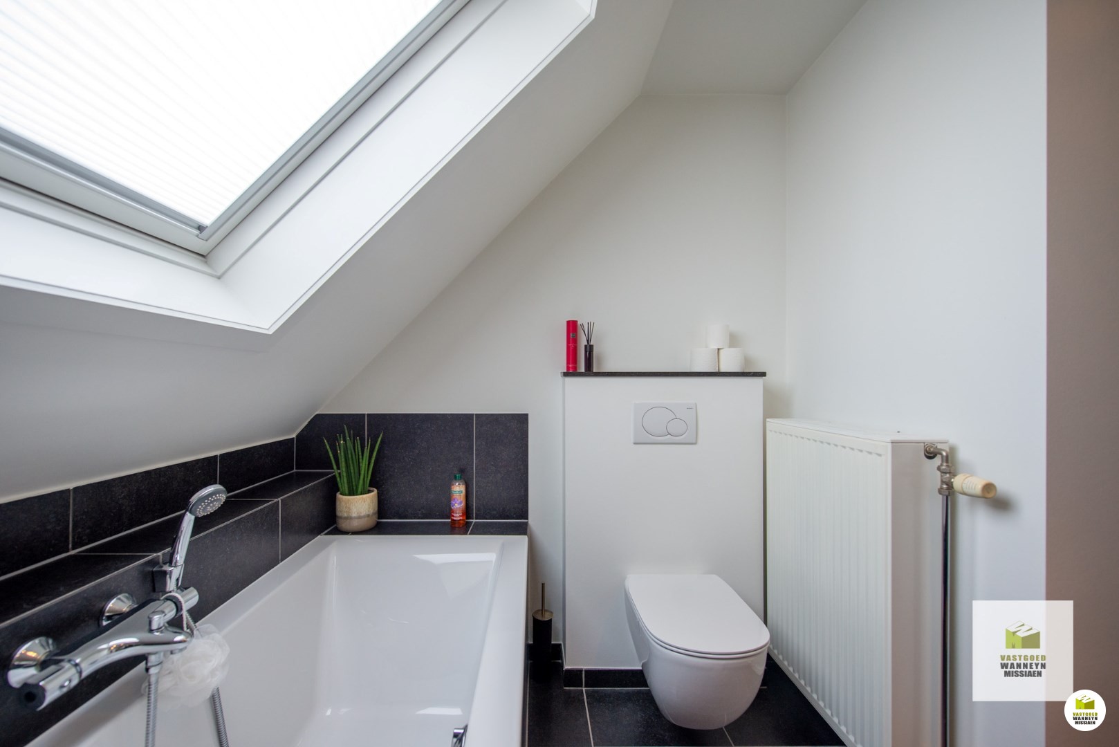 De badkamer is uitgerust met een tweede toilet, ligbad, dubbele lavabo en douche. Tot slot is er nog een volledig geïsoleerde zolder bereikbaar met een schuiftrap.
