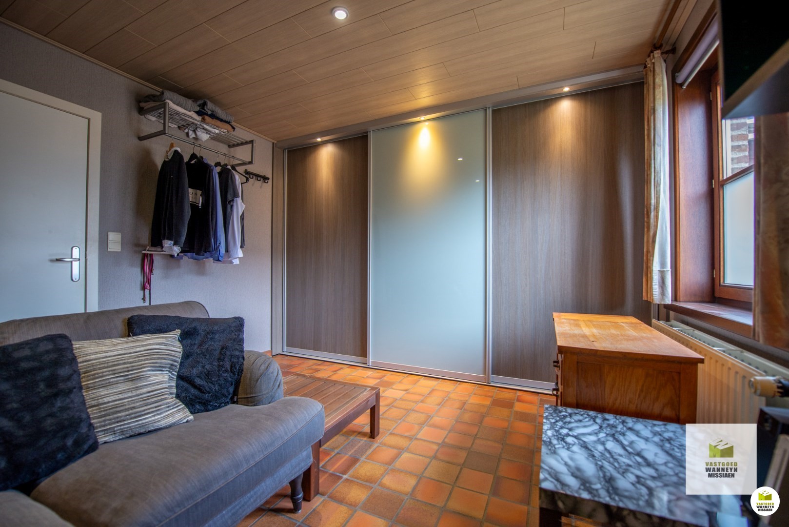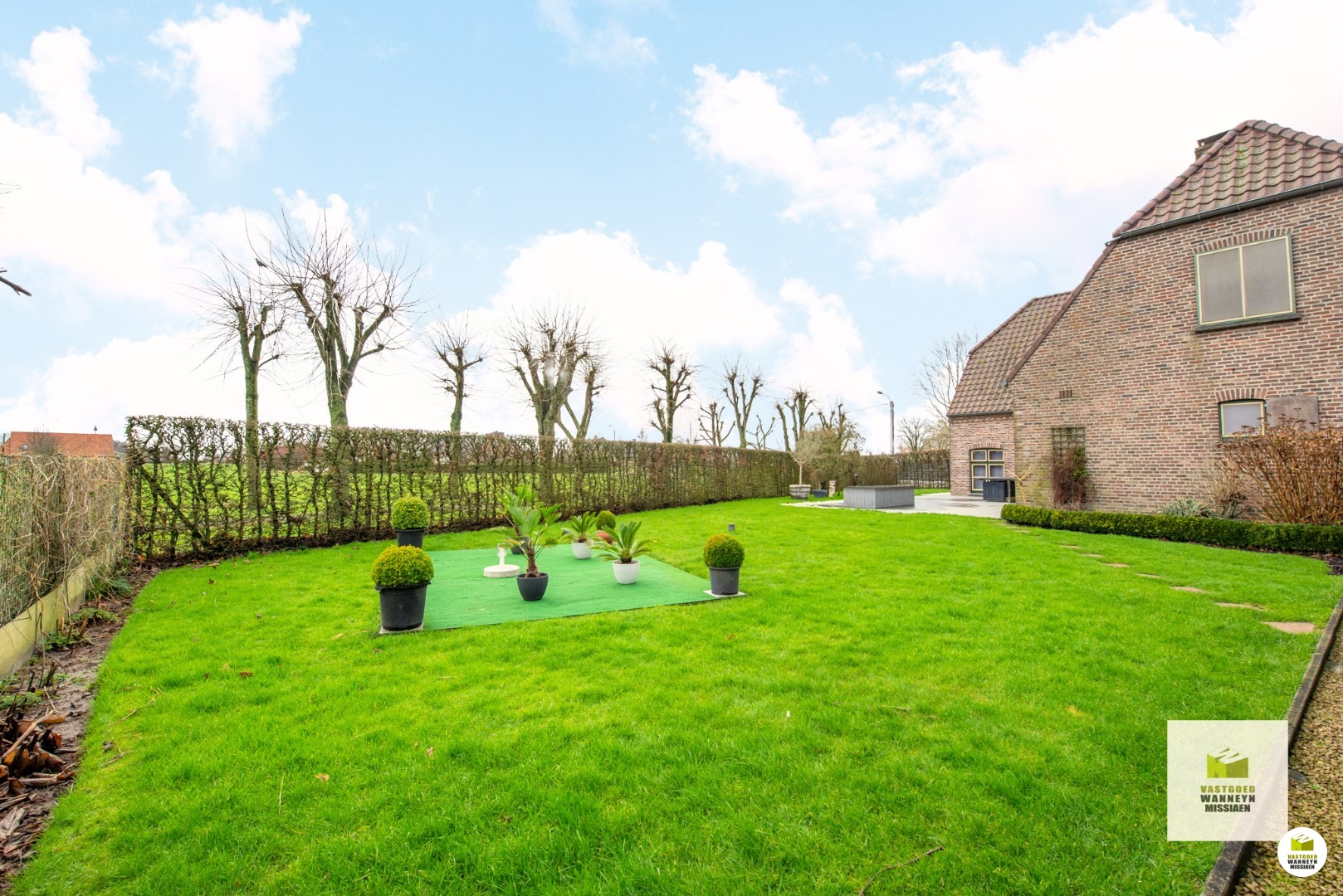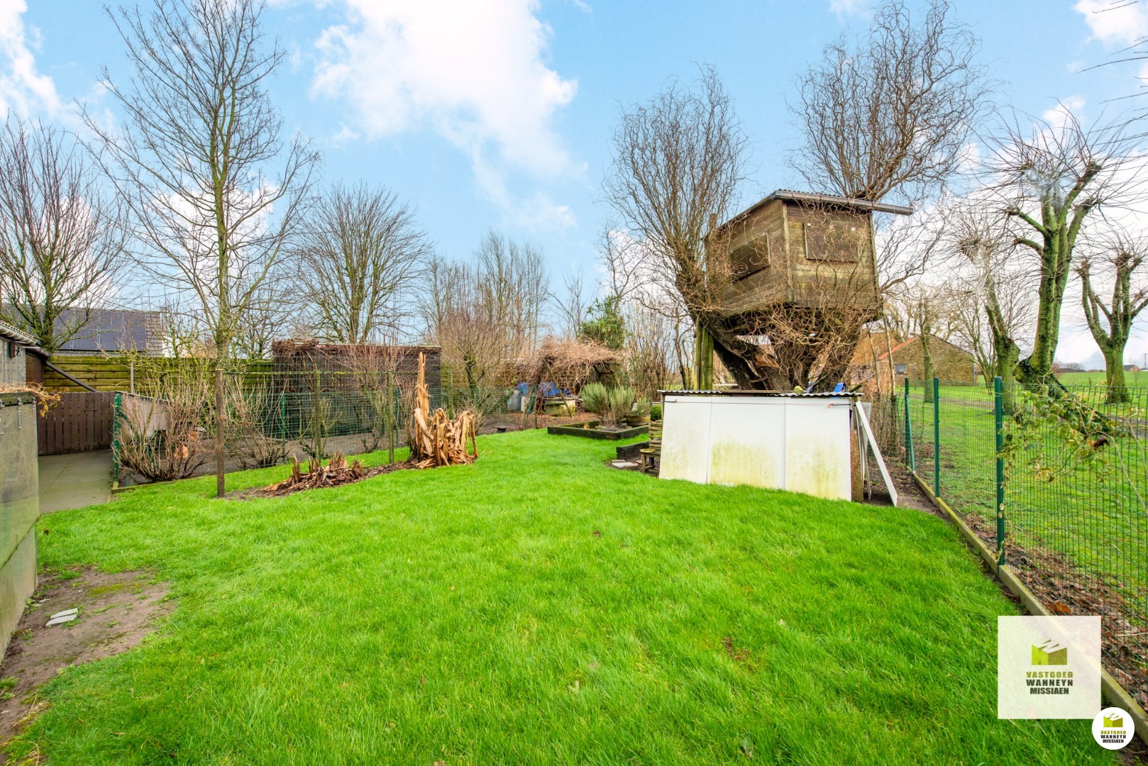 De tuin is netjes en onderhoudsvriendelijk aangelegd met een groot ... zongericht terras met zonneluifels. Er is een groot bijgebouw met zolder dat momenteel dienst doet als tuinberging, deze kan ook ingericht worden als studio/-zorgwoning, wellness, praktijkruimte, ...dieper in de tuin vinden we de hout stockageplaats, een moestuin, een kippenpark, een avontuurlijke boomhut, .. de carport naast de woning is 5 m breed.