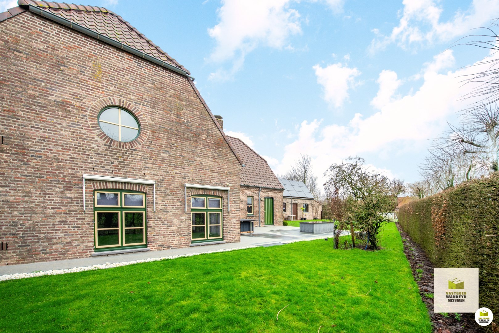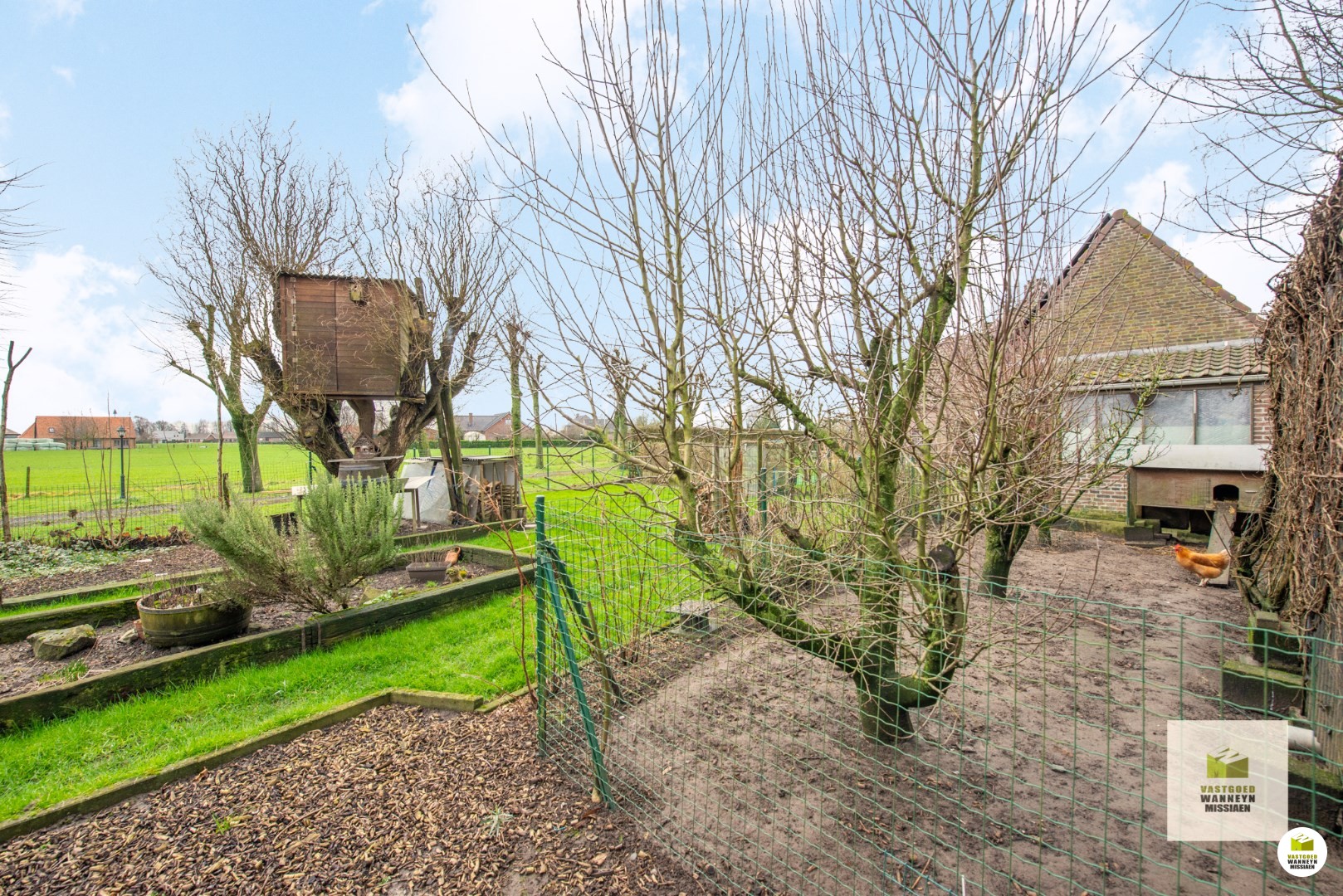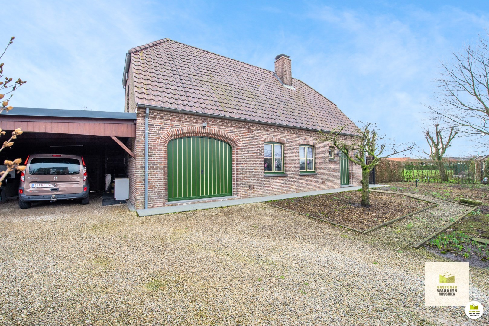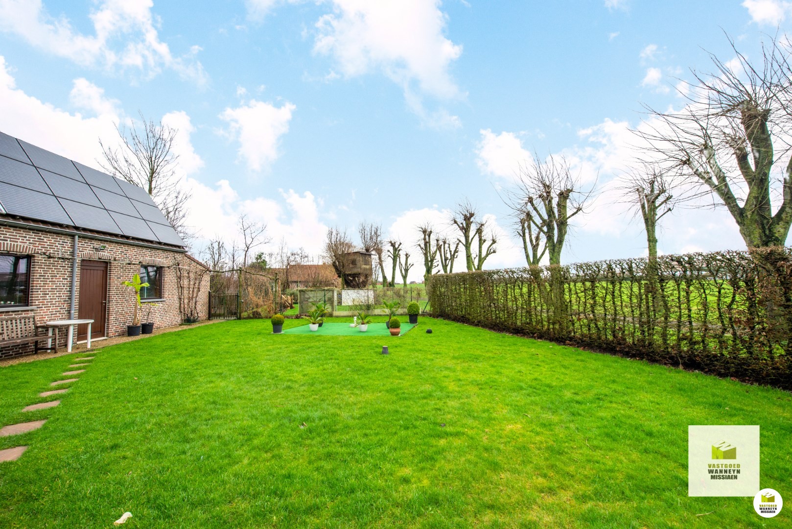 De tuin is netjes en onderhoudsvriendelijk aangelegd met een groot ... zongericht terras met zonneluifels. Er is een groot bijgebouw met zolder dat momenteel dienst doet als tuinberging, deze kan ook ingericht worden als studio/-zorgwoning, wellness, praktijkruimte, ...dieper in de tuin vinden we de hout stockageplaats, een moestuin, een kippenpark, een avontuurlijke boomhut, .. de carport naast de woning is 5 m breed.