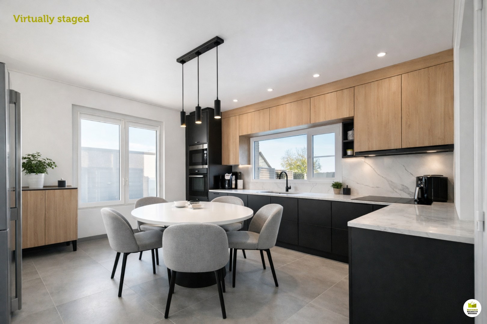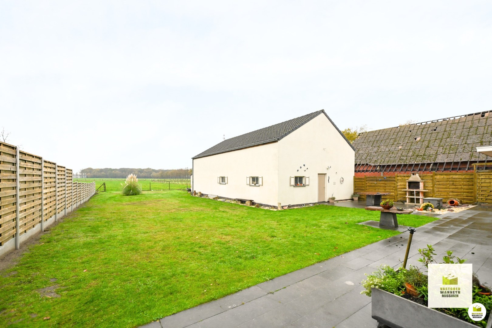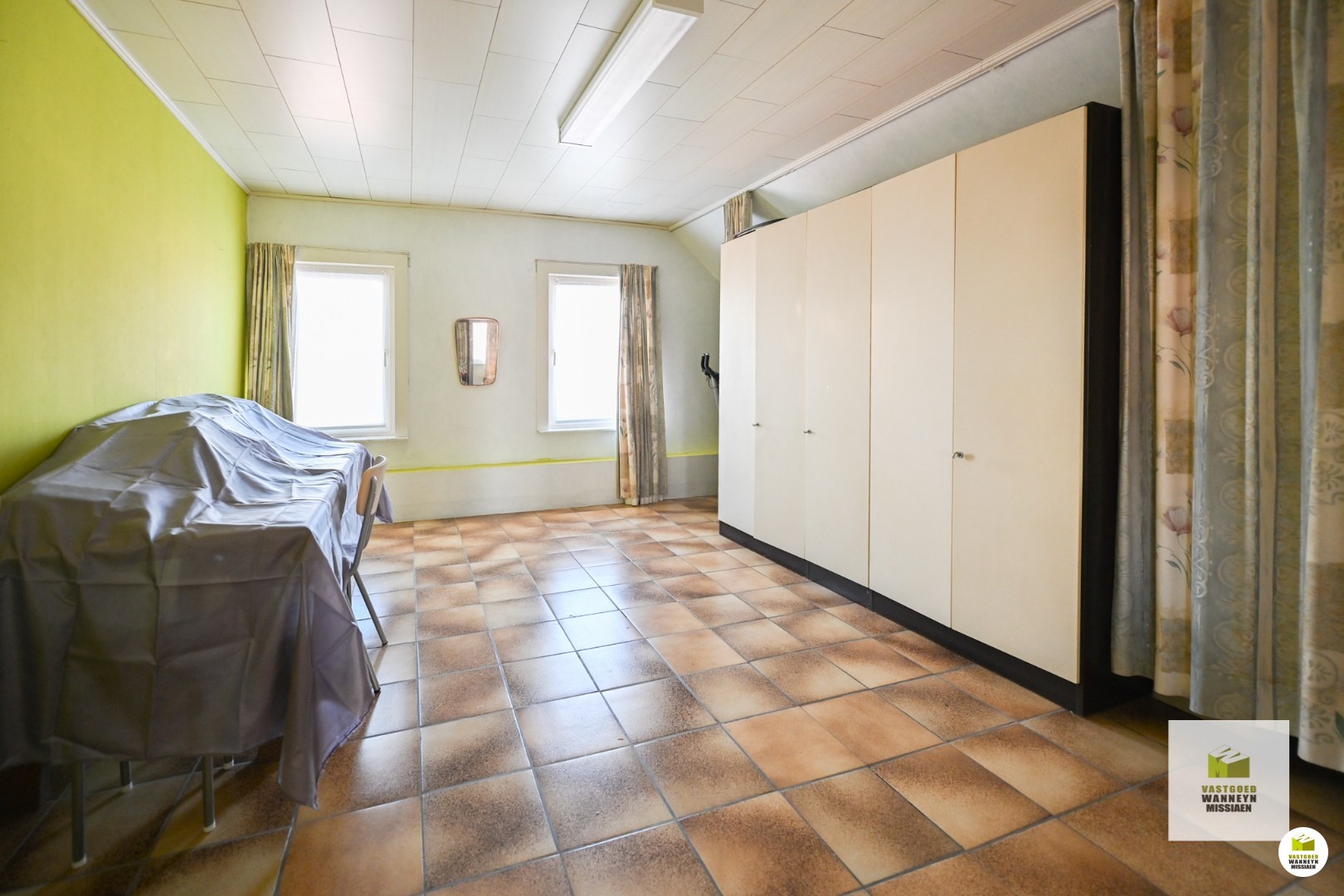 Deze ruime woning beschikt over 5 slaapkamers (waarvan 2 gelijkvloers), een groot vergund bijgebouw van 100m2 en is rustig gelegen met landelijk vergezicht over de velde en de bossen.