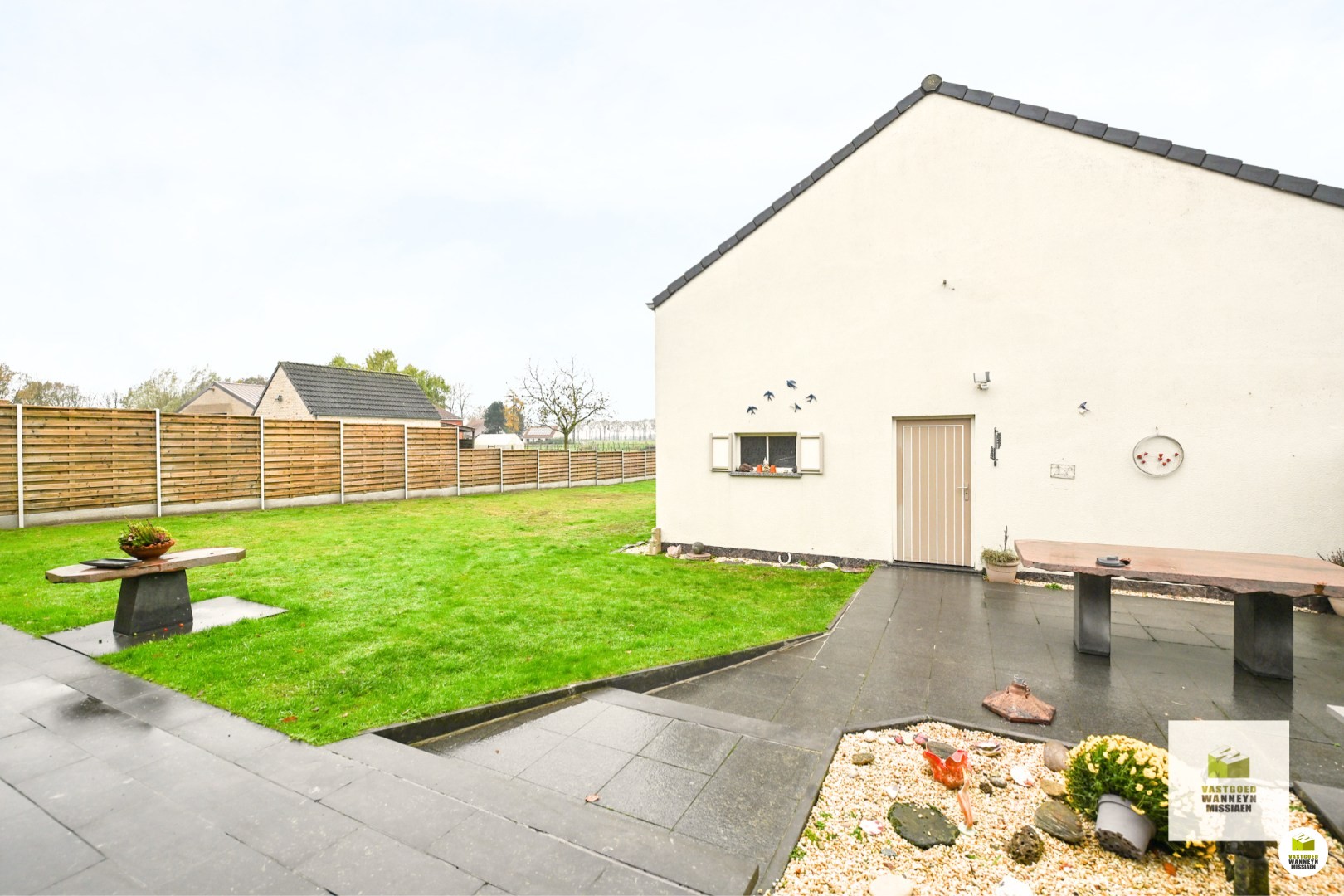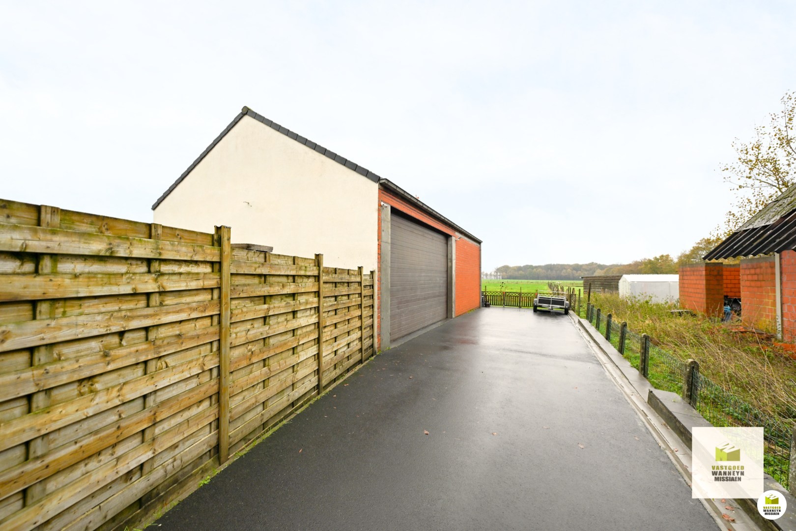 Het perceel meet 1.143m2, waardoor er een ruime tuin met terras is. Via het terras bereiken we het bijgebouw. Dit meet 100m2 met een achterliggende bergruimte van 13m2. De loods is volledig vergund als opslagruimte en is voldoende hoog voor het bergen van bijvoorbeeld een mobilehome of camionette. De poort is dan ook 6 meter breed en meer dan 3 meter hoog. Deze is te bereiken via een verharde oprit aan de zijkant van de woning. Tot slot is het eindeloos genieten van de rust en privacy in de tuin met landelijk vergezicht op de velden en de achterliggende bossen!