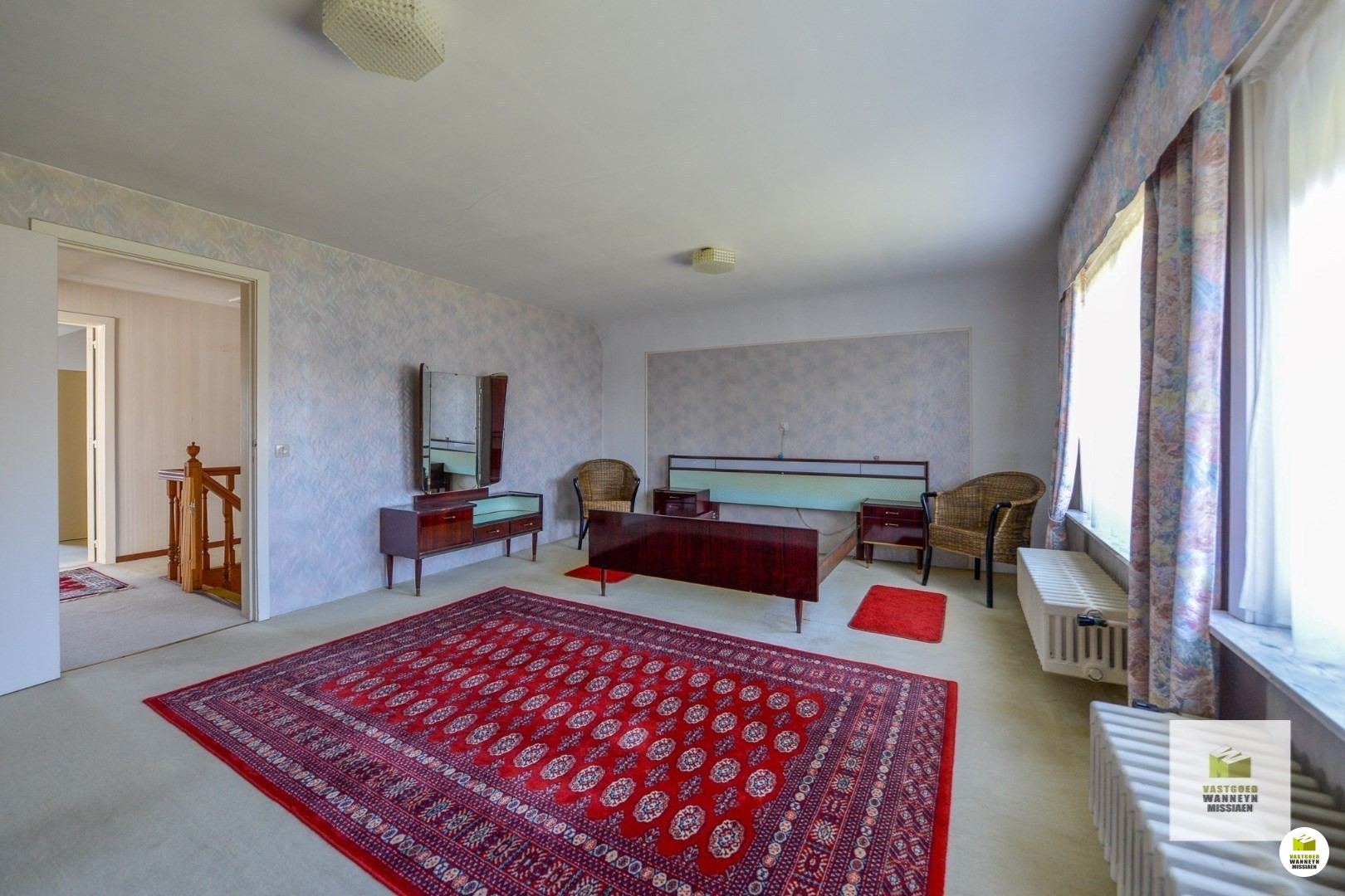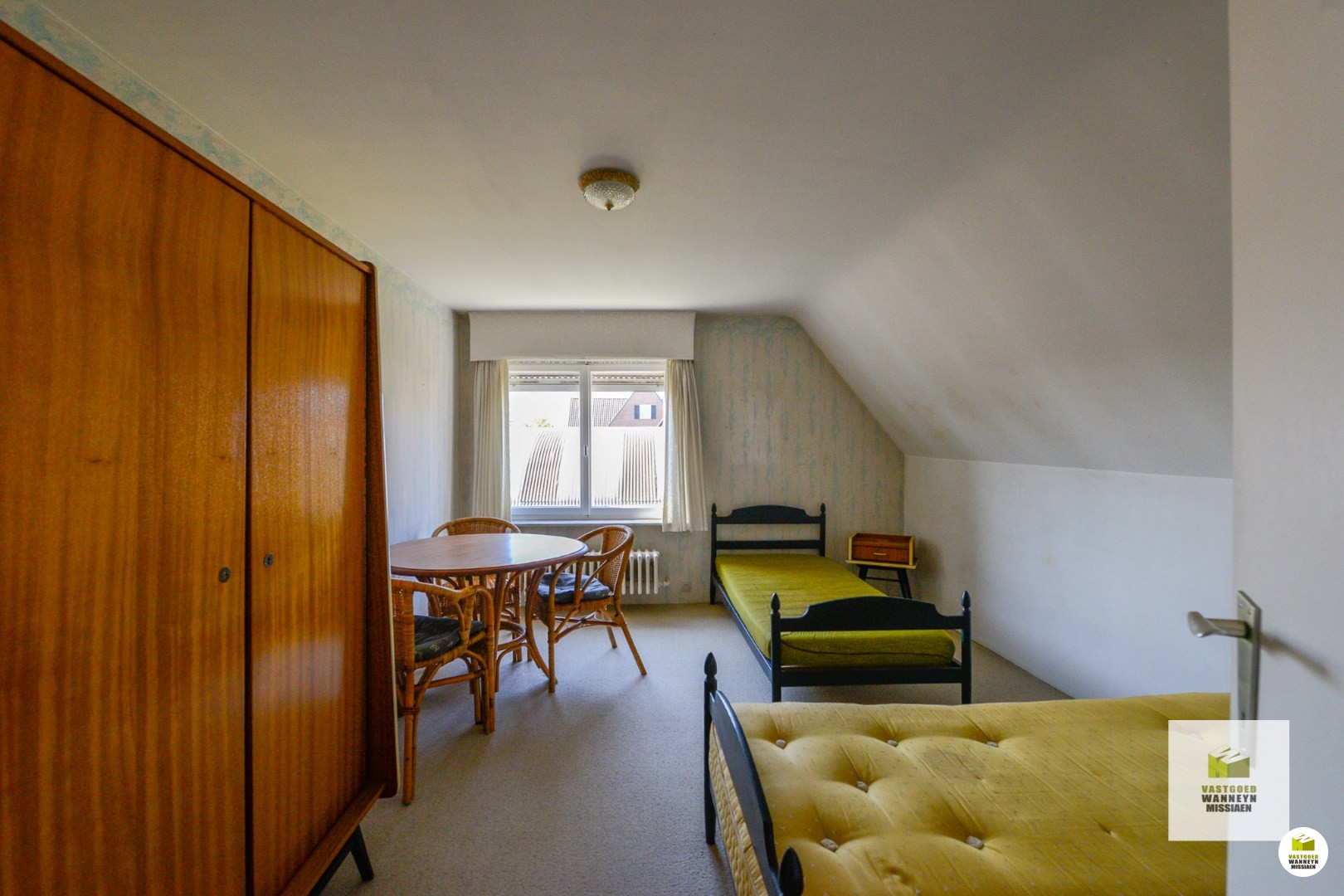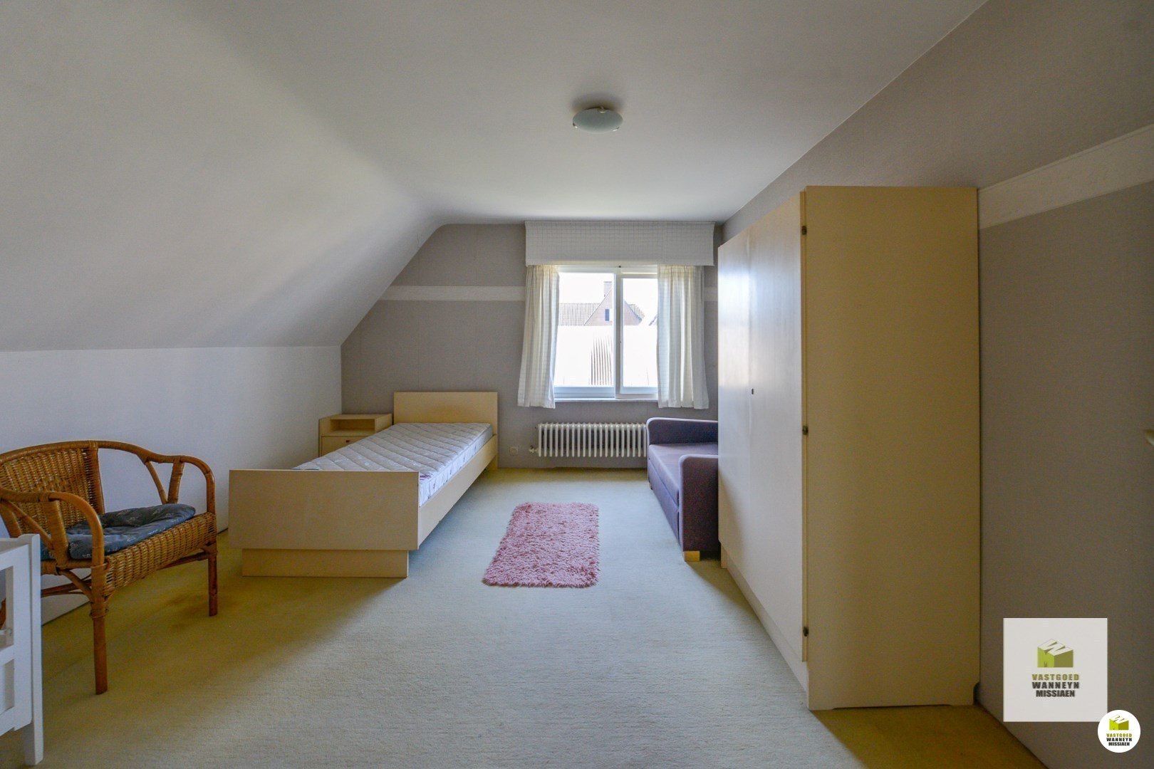 De tuin is nu beplant met dikke struiken, je kan die eruit trekken zo maak je ... gemakkelijk een grotere tuin. Vanuit de keuken bereiken we de grote, droge kelder. Op de eerste verdieping zijn er 3 ruime slaapkamers (respectievelijk meten ze: 26 m2, 14m2, 14m2) alsook is er een badkamer met ligbad, extra toilet en lavabo. De linnenkamer kan ook dienen om een vaste trap naar de zolder te maken. Het is mogelijk om hier nog extra kamers te maken, nu is de zolder bereikbaar met een schuiftrap. De zolder is geïsoleerd met 13 cm.