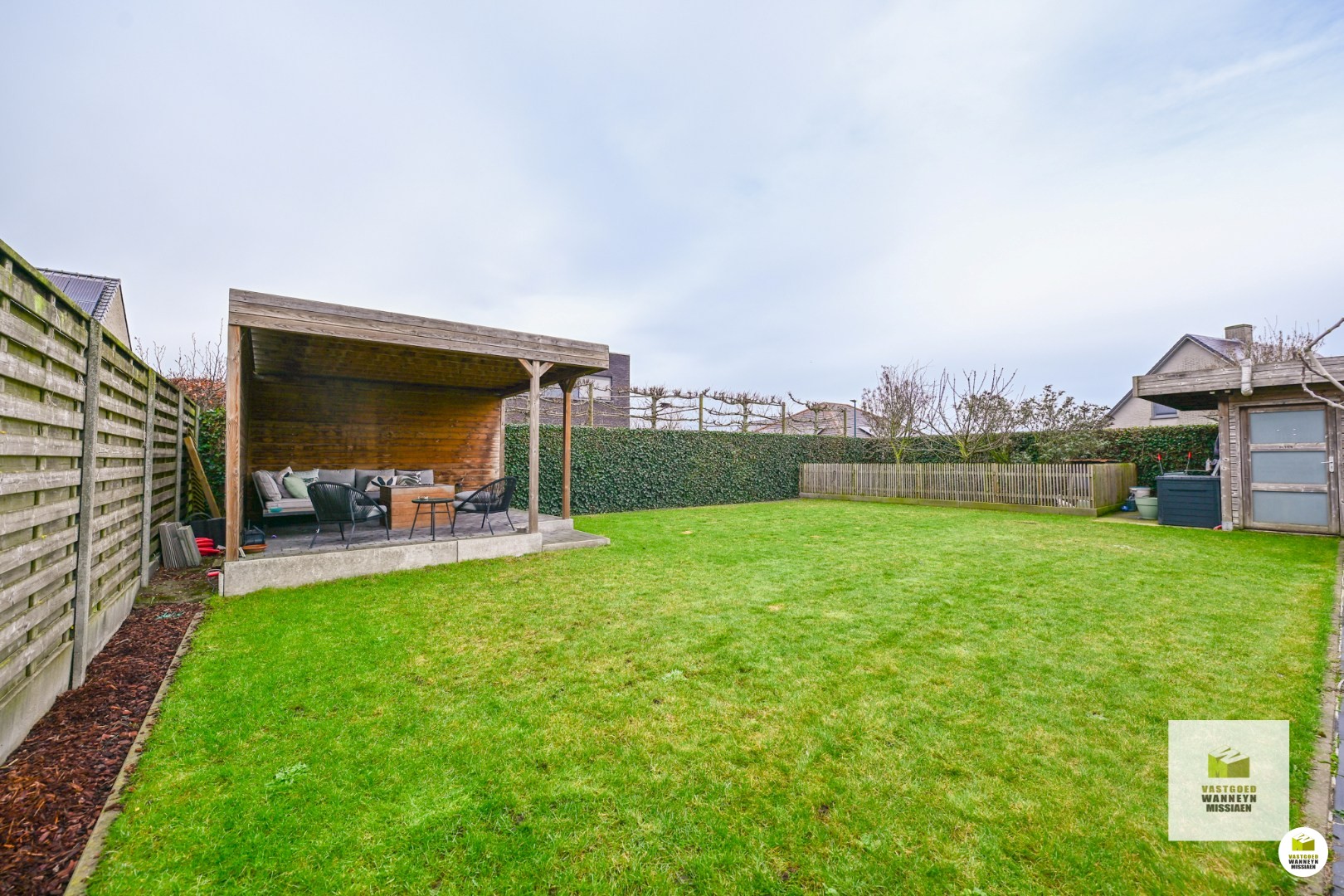 Buiten is het heerlijk ontspannen in de ruime en zongerichte tuin. Palend aan de carport is een praktische tuinberging voorzien, die ook uitkomt in de tuin. Vanop het terras is het de hele dag door genieten van een gezellige koffie in de ochtend of sfeervolle BBQ in de avond!