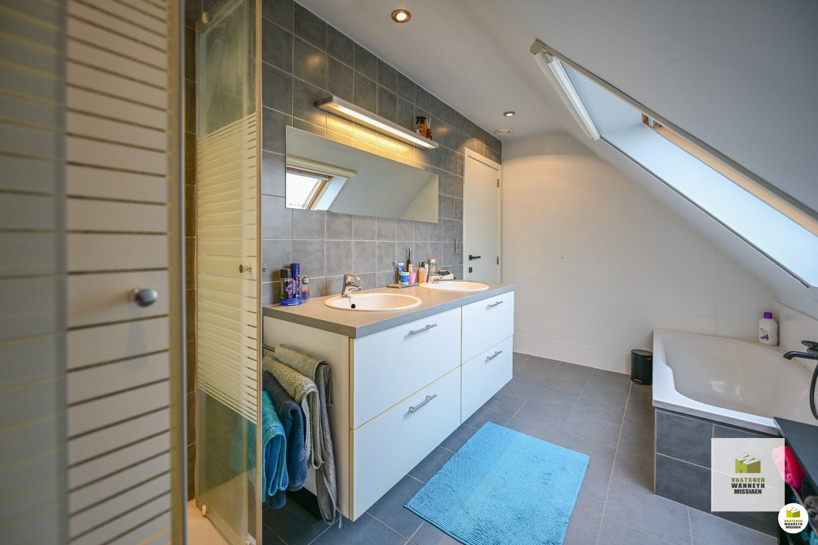 Boven zijn vervolgens 3 slaapkamers, een apart toilet en een praktische badkamer. De badkamer is voorzien van een ligbad én douche, alsook dubbele lavabo. Tot slot is er nog een bergzolder.