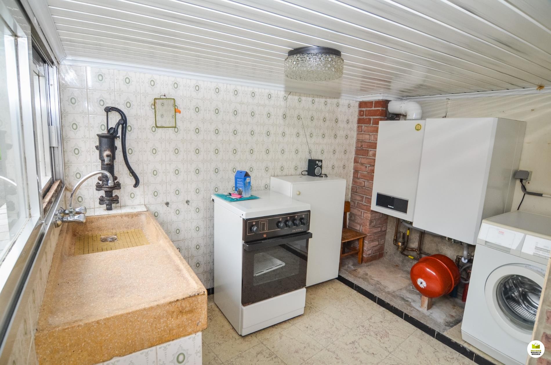 De woning omvat op het gelijkvloers: leefruimte, keuken, kelder, 2 slaapkamers, veranda, badkamer met douche, lavabo en toilet, wasplaats, garage met elektrische poort. Verdieping: 3 slaapkamers, afzonderlijk toilet.
