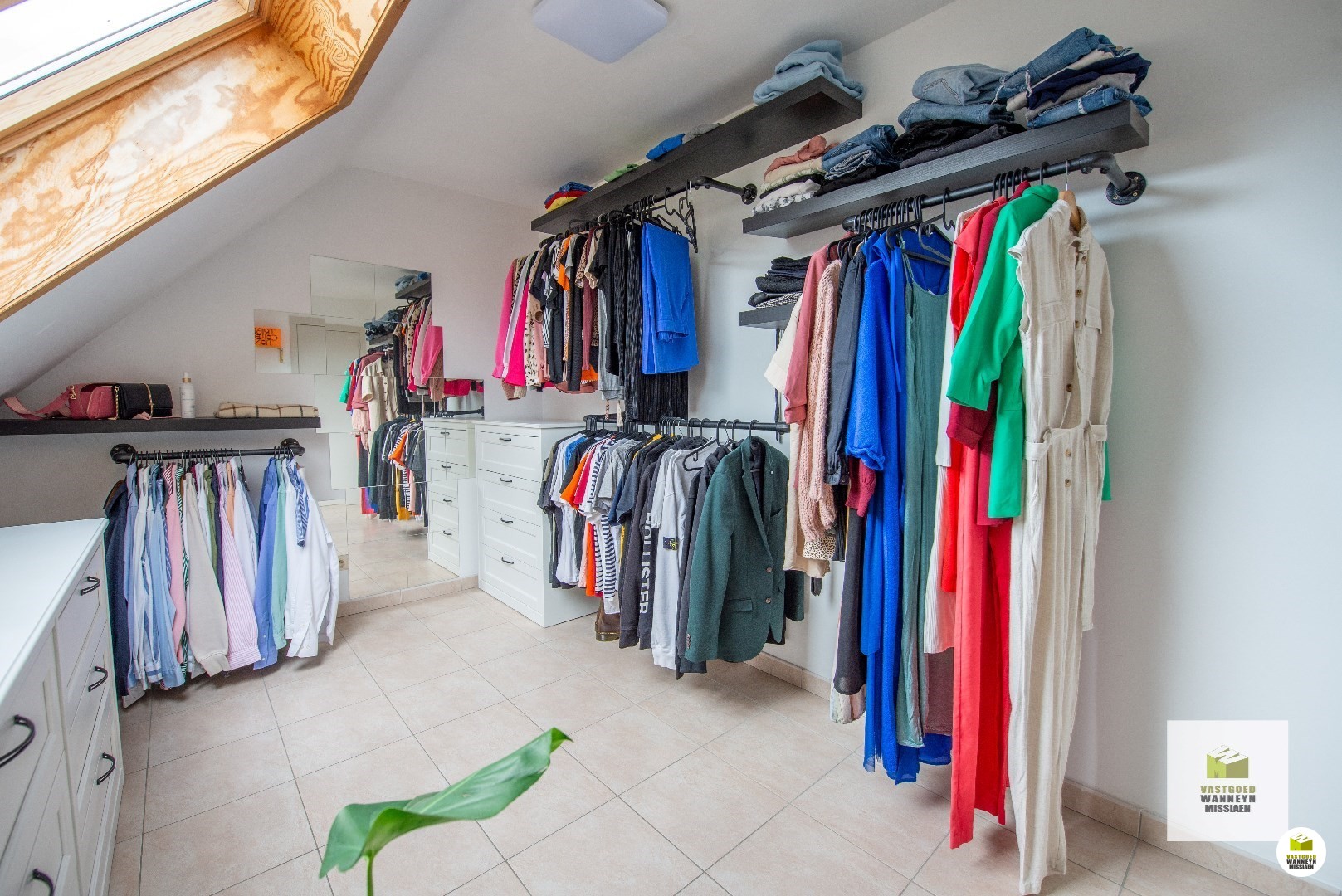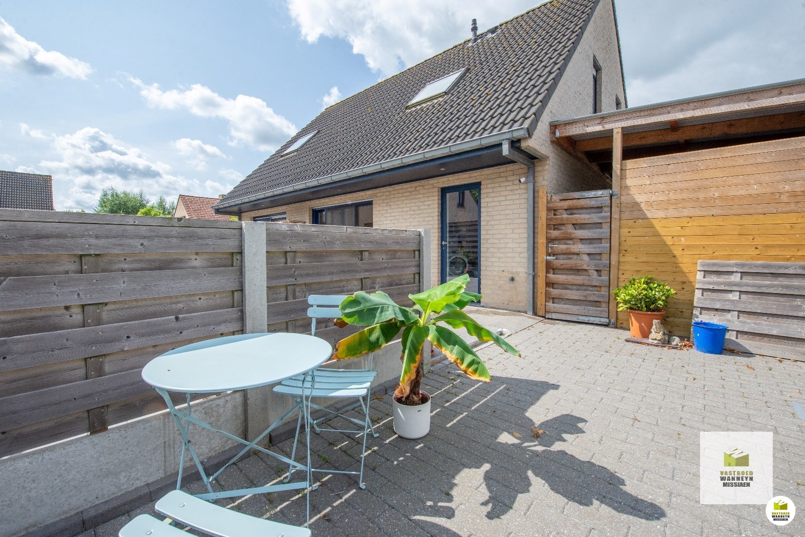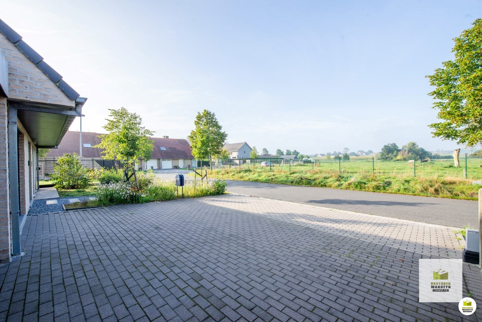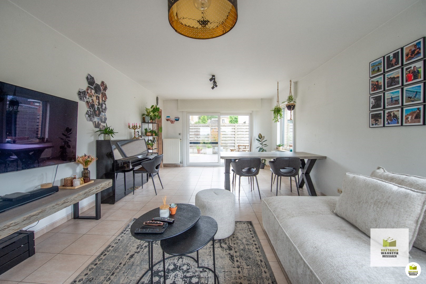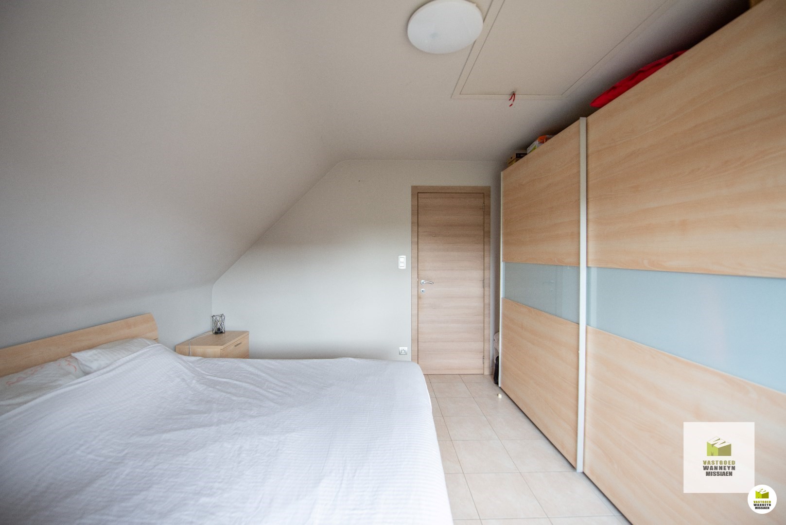 Indeling: Inkomhal met vestiaire hoek en verzorgd gastentoilet. Binnenkomen doen we via de glazen deur. We hebben uitzicht vanuit de zit- en eethoek op de tuin en het groot terras maar ook op de ver uitgestrekte velden. De keuken is volledig ingericht en bevindt zich vlak naast de berging/garage en achterdeur. Je kan gemakkelijk met een 4-tal personen eten in de keuken. Fijn is ook het schuifvenster naar het groot terras met bijhorende vliegramen. Op de ... eerste verdieping vinden we een badkamer ingericht met ligbad én douche, dubbele lavabo en apart toilet. Er zijn 3 ruime slaapkamers die voorzien zijn van manuele rolluiken. In de tuin is er een praktische en verrassend ruime geïsoleerde tuinberging. Er is ook een poortje aan de zijkant, gemakkelijk voor iemand die bijvoorbeeld graag gaat fietsen. In de tuin zijn er verschillende leuke plekken waar je de zon en de schaduw kunt opzoeken.